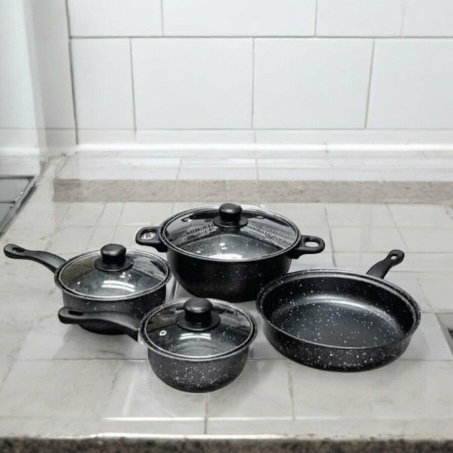 MRG CENTER | Granite cooking pots set, 10 pieces, brown color