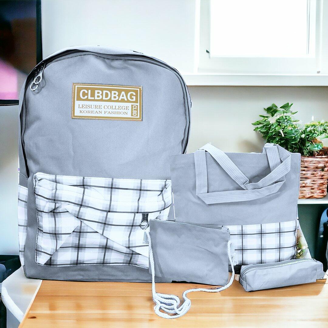 طقم حقيبة مدرسية-4 قطع-رمادي فاتح